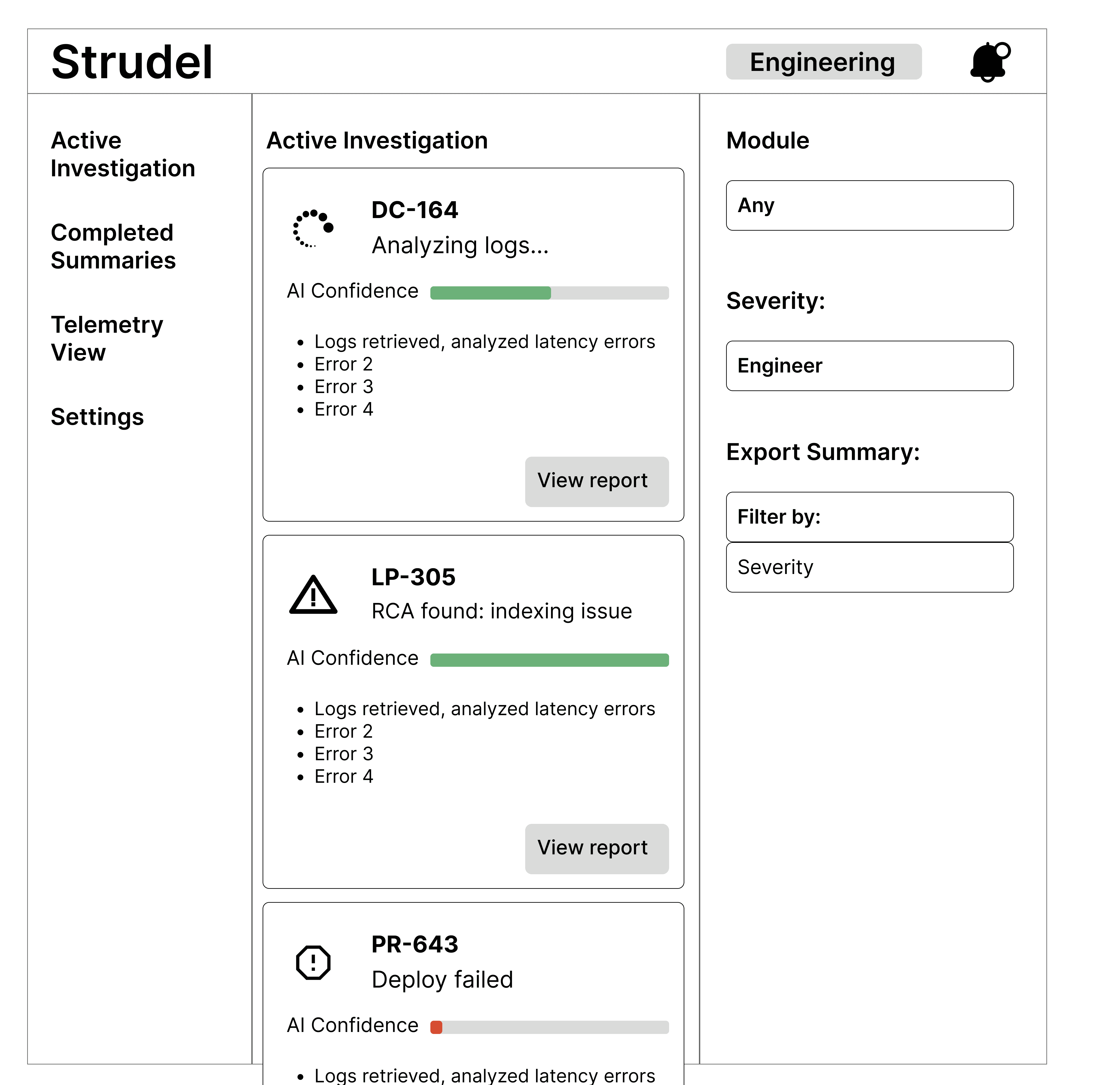 Strudel AI builds an intelligent copilot for technical support teams. Dawn, the virtual support engineer, is powered by a proprietary small‑language model (SLM). It ingests telemetry, logs, and code changes to help diagnose and resolve issues, and it closes the loop by drafting responses, linking to Jira or Freshdesk, and confirming fixes against production signals.